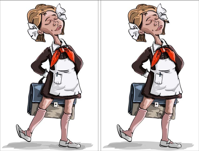 Наверняка кто-то из наших читателей помнит эту школьную форму и красные галстуки по собственному опыту. Ну а кто-то видел только в кино. Но узнает ее каждый. Все-таки это была целая эпоха больших бантов, белых фартуков и пионерских линеек. Давайте немножко окунемся в советское детство с нашим новым заданием на поиск отличий. Вперед — вспомним, что когда-то в школу ходили с портфелями! Задание