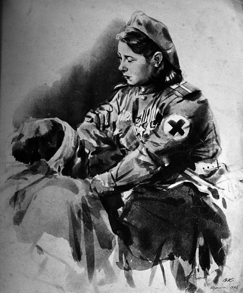Здравствуйте любимые, родные, И вы, мои соседи по квартире. Я знаю, что читаете все вместе Вы письма с фронта и известия. Посылку вашу с хлебом получила. Спасибо Вам! Со всеми разделила. В письме узнала: Маша заболела… Так жаль… Она же петь хотела… Война калечит молодых и стариков, И каждый день уносит жизни их тайком. Вроде бежит солдат с атакою вперёд, Через секунду в него строчит пулемёт. Ты спрашиваешь, мама, страшно ль мне? Да, очень. Очень страшно на войне. Сегодня рядом с блиндажом снаряд взорвался, Погибли все, кто рядом оказался. А их ведь ждут, надеются и верят, Что похоронка обойдет их двери. У нас от боли сердце разрывается, Война, проклятая…Так долго не кончается. И немец прёт сильнее и сильнее, Мы не сдаёмся, Родина главнее. Назад нельзя, только в перед! От нас страна победу очень ждёт. Мы с девочками третий день не спим, Устали очень, выбились из сил. Но раненых везут к нам и везут. А кто ж поможет, вот мы все и тут… Их подлатаем и они в атаку, Им гипс, они за штык и в д