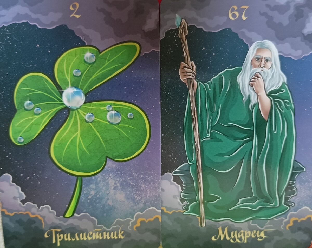 Ожидание, надежды, удача. Придаёт мужество, уверенность. Здоровье- необходимость обратиться к гомеопатии, физиотерапии. Карта- призыв остановить одиночество.