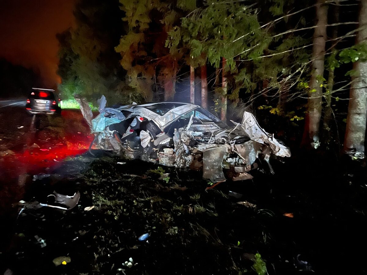 Очевидец рассказал о последствиях серьезной аварии, которая произошла в Выборгском районе Ленинградской области в ночь на пятницу 16 сентября. Единственным участником ДТП, которое случилось недалеко от поселка Ольшаники Первомайского сельского поселения, стал автомобиль «БМВ X5», который, вылетев с дороги, буквально превратился в груду обломков. «В машине был только водитель, живой, ходил, разговаривал. В рубашке родился – это ничего не сказать», - написал свидетель, поделившись фото с места происшествия в группе «ДТП-ЧП-СПб» ВКонтакте. В беседе с «Мегаполисом» молодой человек подробнее рассказал о том, что увидел прошлой ночью на загородном шоссе. «Мы не видели саму аварию, так как ехали за ним. Он тоже не понял, как все было. Примерно в 50 метрах от его машины, перпендикулярно дороге, лежало дерево – тонкое, сантиметров 15. Не думаю, что это он его снес. Скорее, не заметил на скорости 150-200 км/ч, наехал – и дальше его размотало и выкинуло с дороги. От скорой помощи он отказывался,