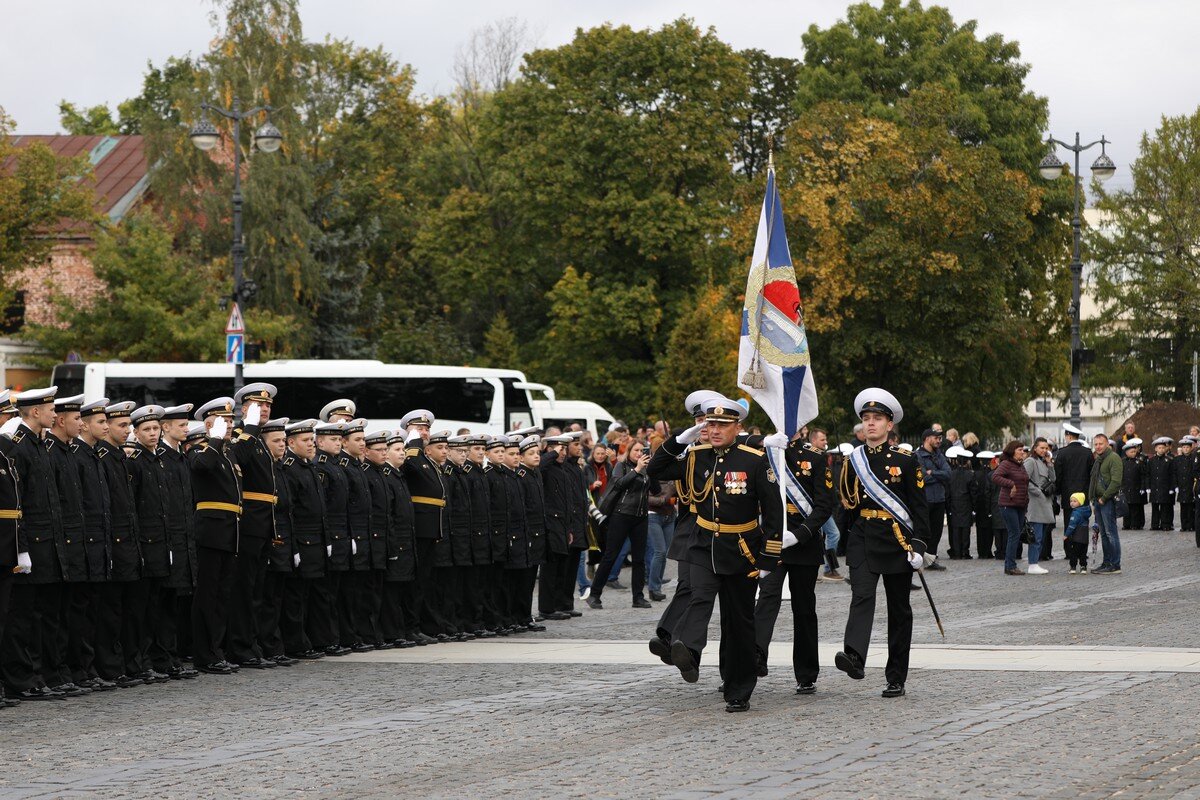 В завершение церемонии все кадеты прошли торжественным маршем, а новый набор с почетными гостями сфотографировался у памятника адмиралу С.О. Макарову.