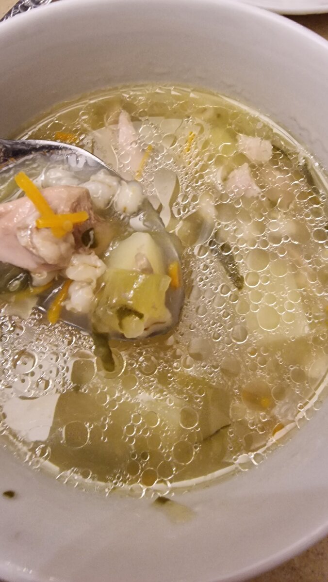 На кастрюлю 3,5 литра: Отвариваем бульон из любого мяса (говядина, курица, индейка). Отделам мясо от кости и отправляем в кастрюлю. Натераем на тёрке морковь, солёные огурцы, нарезаем мелко лук. Картофель очищаем, нарезаем кубиками. Все отправляем в кастрюлю. Перловку хорошо промываем и отправляем в кастрюлю. (А можно отварить до полуготовности в отдельной кастрюле, так крупа меньше клейкости придаст супу). Добавляем соль, перец, лавровый лист. Варим наш супчик около 1,5 часов. Приятного аппетита!!!