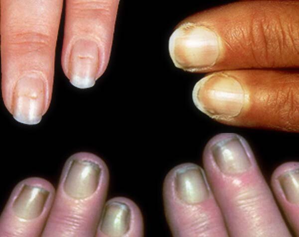 Цвет ногтей может измениться на любой другой цвет, кроме черного.К ним относятся, цвета ногтей и их показания следующие: