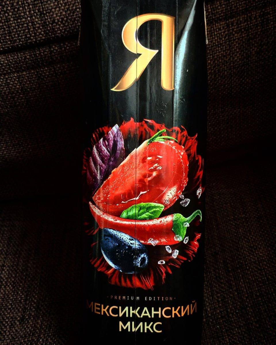 Сок прикольный, но с обманкой. Ибо слово «мексиканский» и перчик на лицевой этикетке ну на что-то знатокам и любителям намекает.