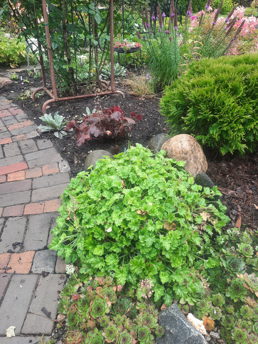 Вот она, удивительная г...а. ни одна другая так себя не ведет. Много лет назад, когда я покупала деленку около метро, спросила у хозяйки, как ее размножить. Совет был простой: посадить поглубже. И завертелось. Каждый год их становилось все больше. И наступил момент, когда я перестала делить кустики. Удивлению моему не было предела. Таких огромный кустов я не видела ни у одного сорта. На верхней фотографии один куст. Ему года три. Это я его вчера пощипала уже, а то камни начали заваливаться от напора. С молодилками боксирует. Здесь молоденькие кустики. Все, что я отламываю от больших кустов, я поистраиваю там, где надо прикрыть пустое место. Просто запихиваю деленку в землю и забываю про нее. Через какое то время она возьмет свое. Тень ли, сонце ли, все сойдет. Лучше, конечно, небольшое притенение, чтобы весной не было иссушения. Вместе с живучкой она может быть прекрасным наполнителем/ заполнителем. Когда функция будет выполнега, кустики легко выдернуть и пересадить. Сунула кустик,
