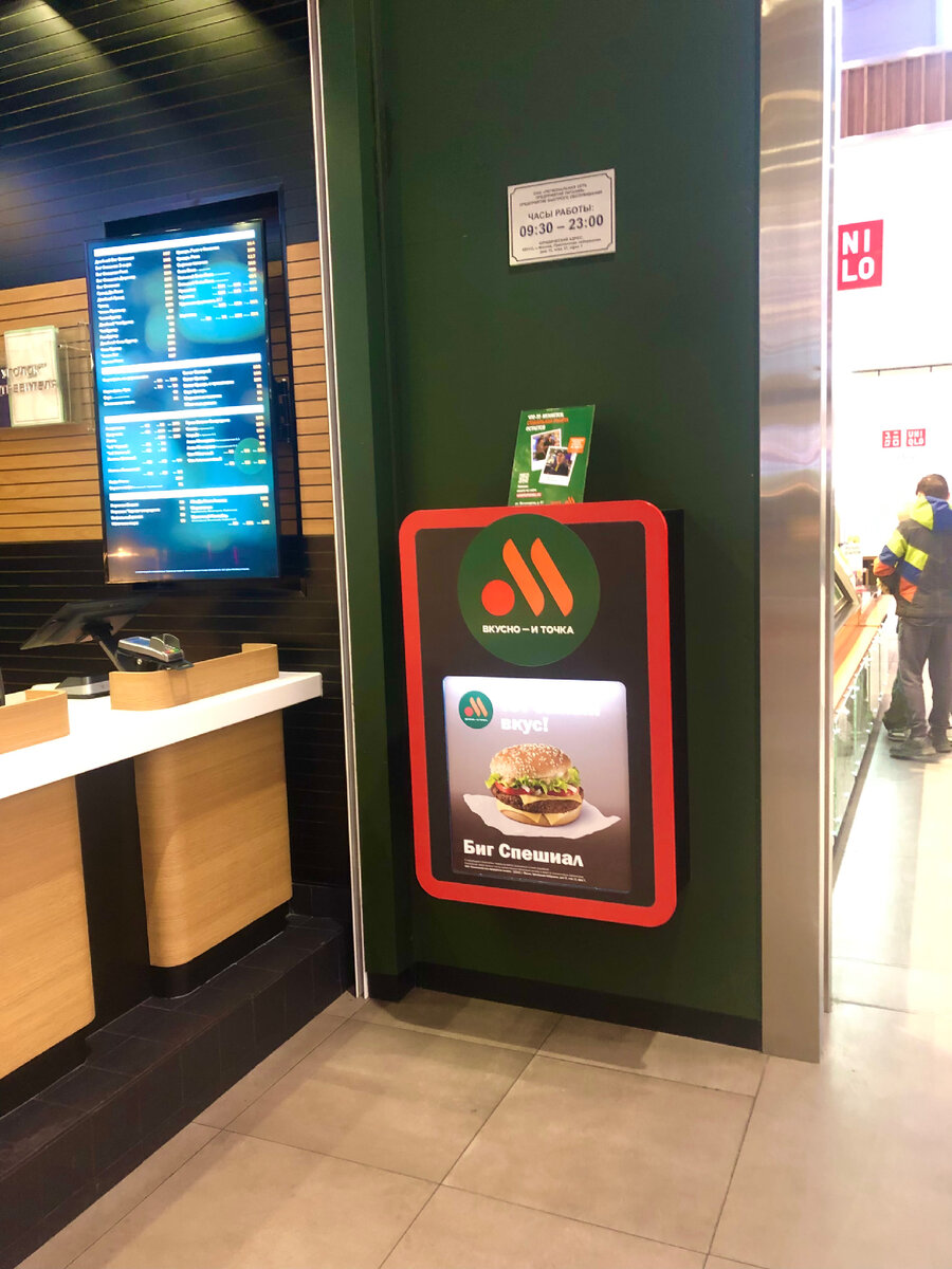 Таки, случилось! После громкого весеннего исхода из нашей страны целой когорты тех, без кого нам не прожить, спустя время началось, местами тихое возвращение, а там, где дверью хлопнули, успешное замещение. Вот и в нашем стольном граде вслед за столицами без особого шума заработала до боли знакомая фастфудная сеть, правда, с новым и пока не таким привычным и запоминающимся названием. На этой неделе мы дважды были в Меге и оба раза намеренно перекусывали во «Вкусно и точка». В первый раз брали чикен хит, во-второй чикен бургер, чтобы составить своё впечатление. В интернете много критики и споров, особенно по поводу названия. Мне же давно хотелось самолично оценить качество еды, именно это мы и сделали, совместив дела и трапезу: • булка с кунжутом, она и в Африке булка, такая же, • капустный лист большой и сочный, • соус, я бы его никогда и никуда не добавлял, ни раньше, ни сейчас, ни в будущем. • курица, по нашему обоюдному мнению стала сочнее прежней. • наггетсы по вкусу точь в т