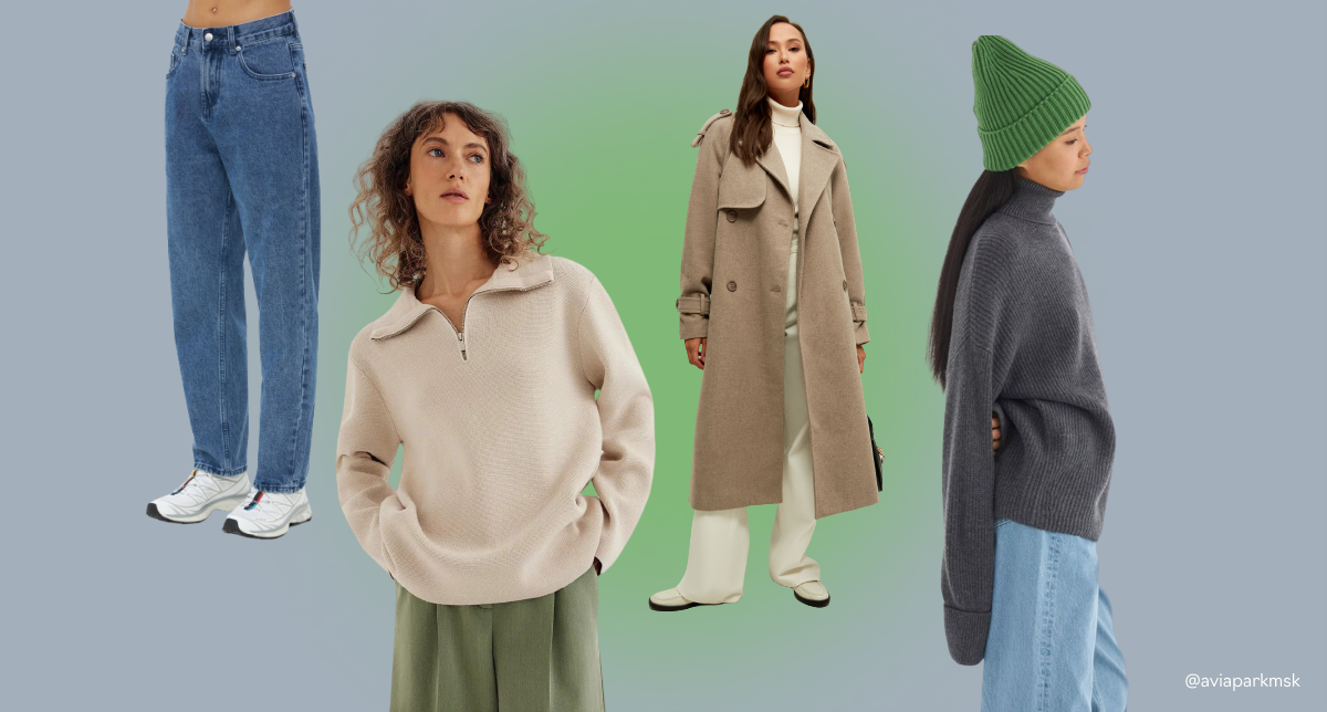 Когда в одном образе сочетаются шерстяное пальто, свитер крупной вязки и деним, его хочется разглядывать. А ещё плотные ткани держат форму и меньше мнутся — это тоже визуально добавляет цены наряду.
