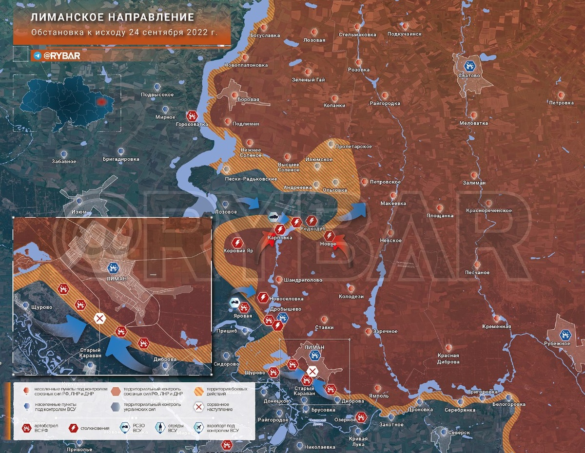 В районе Редкодуба ВСУ удалось воспользоваться численным превосходством и продавить оборону ВС РФ. Украинские формирования вышли на оперативный простор к северу от населенного пункта, где отсутствует сплошная линия обороны. ▪️Украинские формирования установили контроль над Редкодубом, Карповкой, Новое после успешной атаки со стороны Лозового. ▪️Подоспевшие подкрепления мотострелковых соединений 20-й армии провели успешную контратаку и отбили села Карповка и Новое. ▪️Противник закрепился в селе Редкодуб, в окрестностях идут ожесточенные бои. ▪️Украинское командование бросило крупные силы мотопехоты для дальнейшего продвижения к северу и выходу к трассе Сватово - Боровое. В случае выхода ВСУ к Сватово вся Лиманская группировка союзных сил окажется в оперативном окружении. При одновременном ударе со стороны плацдарма у Купянска вся оборона вдоль границы ЛНР может рухнуть. Командование ВС РФ бросает в бой резервы с целью сковать части украинских войск и снизить темпы их продви