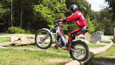 После того как вы овладели техникой базового double blip, вы можете добавлять другие элементы, такие как удержание вилли. Эта более продвинутая техника используется для поддержания переднего колеса высоко над препятствием. Удержание вилли может быть необходимо, если за препятствием находится яма или еще одно бревно, или подъём, на котором желательно обеспечить максимальное сцепление заднего колеса и продолжить движение. Основное отличие от базового double blip это положение ног после второго рывка газом. Вместо того, чтобы полностью сдвинуться назад, позволив мотоциклу подняться на препятствие под телом райдера, райдер должен использовать давление ногами, как показано на фото. Обратите внимание как сжимается задняя подвеска на этой фотографии, такое давление ногами обеспечит максимальную тягу и сцепление колеса, так как вес тела перенесен на заднюю часть мотоцикла обеспечив нулевую нагрузку на переднее колесо. При использовании этой техники потребуется больше движения телом, чтобы подн