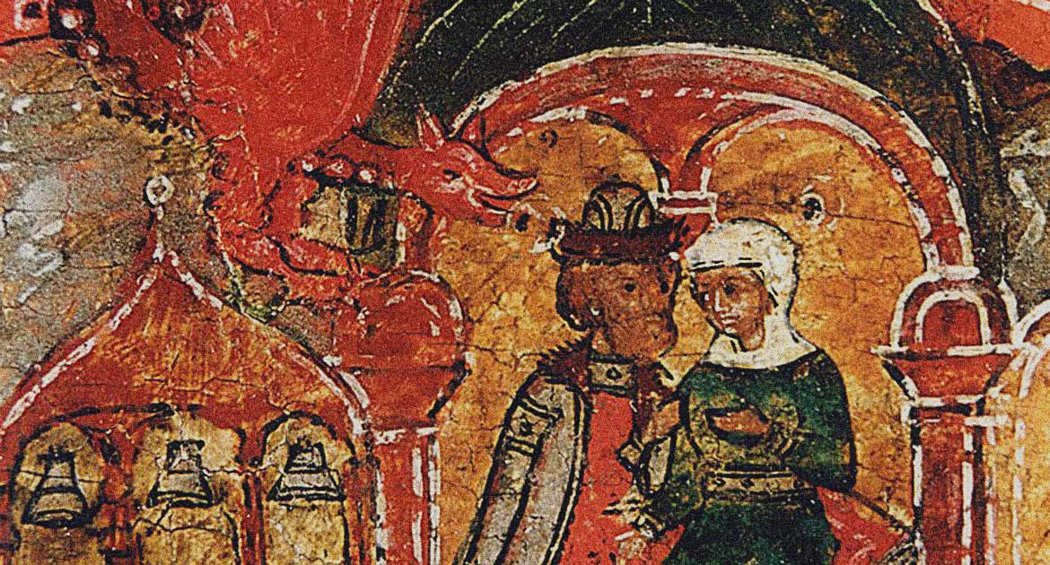Мне кажется, композиция повести дает ответ и на этот вопрос. Петр появляется в тексте жития значительно раньше Февронии и за это время успевает совершить славный и трудный подвиг змееборца, т. е. выступает в роли активного, доминирующего героя. Да, создается впечатление, что, только появившись, Феврония «отодвигает» его на второй план, но не стоит абсолютизировать и этот момент: инициатором одновременной смерти в конце (опять-таки, активным героем) снова оказывается Петр. И Феврония во время посмертного чуда соединения тел в общем гробе перемещается к нему (как и должно быть — жена к мужу), а не наоборот. В результате можно увидеть, скорее, итоговое равновесие — кажется, в наибольшей степени важное для автора текста, ибо именно равновесие — основа идеальной гармонии.