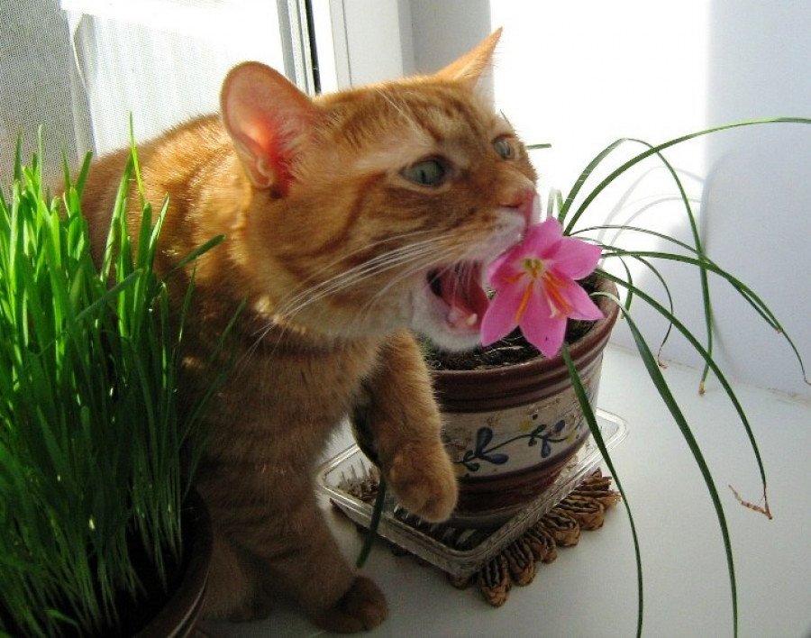 Все знают, что кошки-это маленькие хищники, поэтому всегда должны питаться исключительно мясом и мясными продуктами. Это конечно так, но есть одно но... Иногда питомцу требуется употреблять и растительную пищу. Почему же кошка ест растения?! Причин может быть несколько: 1. В организме вашей любимицы не хватает витаминов. Стремясь пополнить запас, кошка интуитивно пытается получить их из комнатных или садовых растений. 2. Стимулирование работы ЖКТ. Если питомец съел тяжёлую пищу ( например, натуральную), он чувствует дискомфорт и тяжесть в желудке. Некоторые травы вызывают рвоту, и таким образом животное избавляется от неусвоенной еды. 3. В желудке скопилась шерсть. Вылизывая себя, коты и кошки могут проглатывать комочки собственных волос. 4. Игра. Яркая расцветка и аромат растений привлекает кошек, особенно котят. 5. Охотничий инстинкт. Удовлетворяя природную потребность в охоте, маленький хищник зачастую принимает красивый цветок за дичь. 6. Заражение паразитами. Кошки отлично чувств