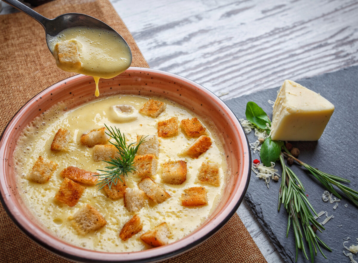 В кастрюлю добавляем картофель, перед тем как картофелю дойти до готовности добавляем лук, морковь. Варим до готовности картофеля, после добавляем сыр и варим ещё минут 5. Отключаем и даём настояться. Сверху посыпаеп укропом. Подаём с сухариками. Приятного аппетита 🍲