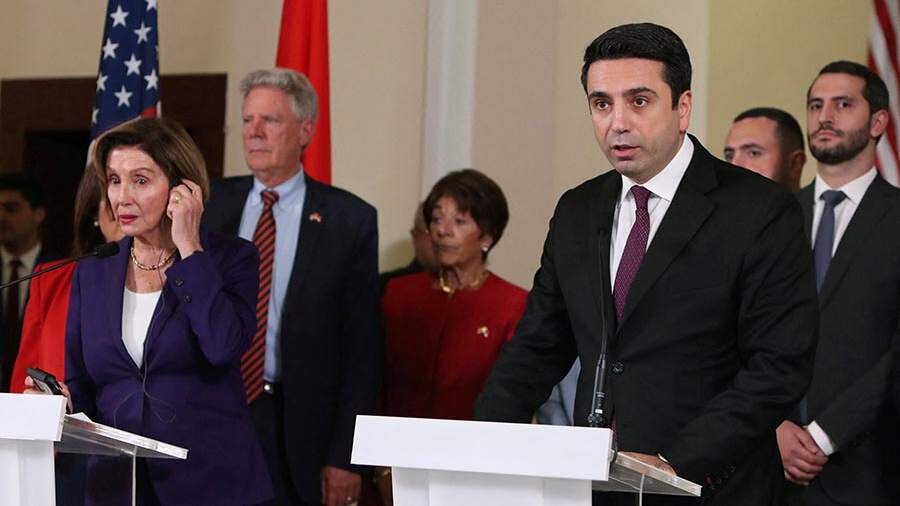 США должны ввести санкции против Азербайджана за действия Баку на армяно-азербайджанской границе, заявил председатель парламента Армении Ален Симонян 18 сентября на встрече со спикером палаты представителей конгресса США Нэнси Пелоси. «Любая помощь США для нас жизненно необходима. Четкие санкции против Азербайджана могут стать еще одним рычагом против экспансионистских амбиций Азербайджана», — заявил он журналистам. Пелоси в свою очередь заявила, что осуждает нападение Азербайджана на суверенитет и границы Армении. «Демократия, суверенитет и территориальная целостность Армении для нас очень важны. Мы здесь, чтобы оказать наше практическое содействие, выбор за Арменией. Мы здесь, чтобы выразить нашу готовность» — сказала Пелоси. 17 сентября Пелоси прибыла с визитом в Армению. В распространенном ее офисом заявлении указывалось, что визит «является мощным символом непоколебимой решимости Соединенных Штатов иметь мирную, процветающую и демократическую Армению и стабильный и мирный Кавказск