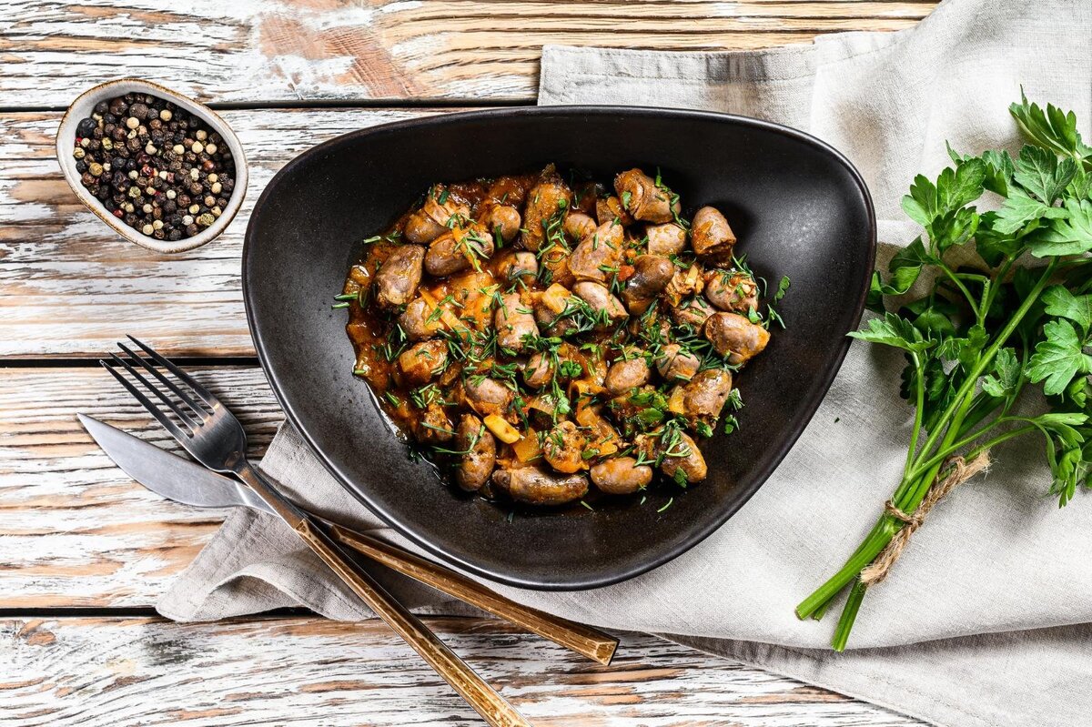 Универсальный рецепт тушеных куриных сердечек
