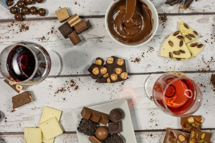Вино и шоколад — это одна из самых сложных пар для сочетания. Если вы попробуете с бокалом красного сухого вина дольку тёмного шоколада, то получите в общей сложности чрезмерно горький кислотный вкус. Это происходит из-за повышенного содержания флаванолов в обоих продуктах, которые как раз и отвечают за горечь и терпкость.
