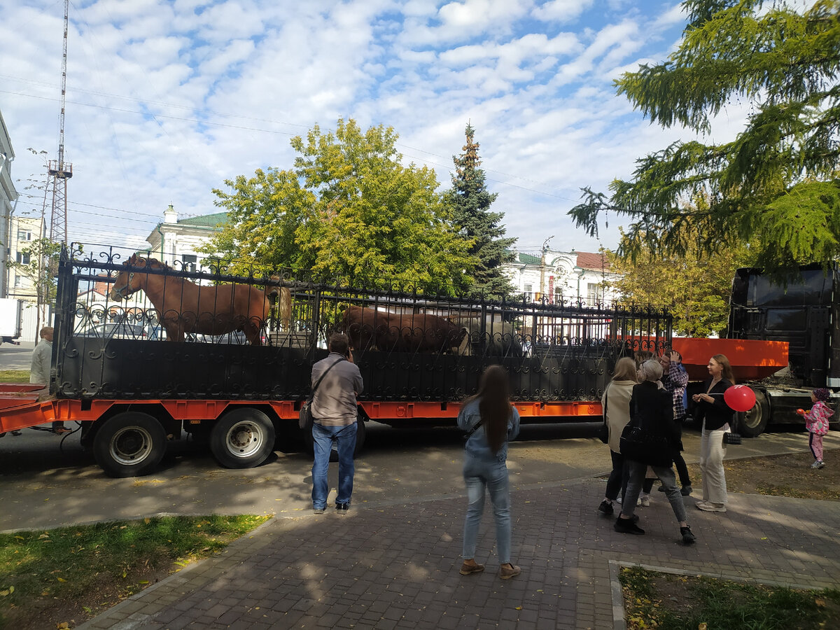 Снова выходные, снова Курган. На улицах города проводился ряд мероприятий, приуроченных ко Дню труженика села: ярмарка, концерты, представления и небольшая минивыставка российской сельскохозяйственной техники. Местные дилеры пригнали сюда тракторы трех российских компаний: пофоткаться, а на чем-то и детишкам посидеть можно было. Но тракторы стояли больше для создания характерной сельской атмосферы. Ну что ж, три модели трактора на потеху зрителям! Кто они? Обо все по порядку! Две овцы, два быка и лошадь Немного отвлечемся. Шум, гам, активная подготовка к концерту, и чуть в стороне стоит седельный тягач с необычным полуприцепом. Этот полуприцеп предназначен для перевозки животных, да еще и подготовлен, чтобы демонстрировать породистых на подобных мероприятиях. Еще издалека первым делом в глаза бросается большой конь, а когда подходишь по-ближе, понимаешь, что там есть и другие животные. Местное хозяйство решило воспользоваться ситуацией и продемонстрировать на мероприятиях свою гордост