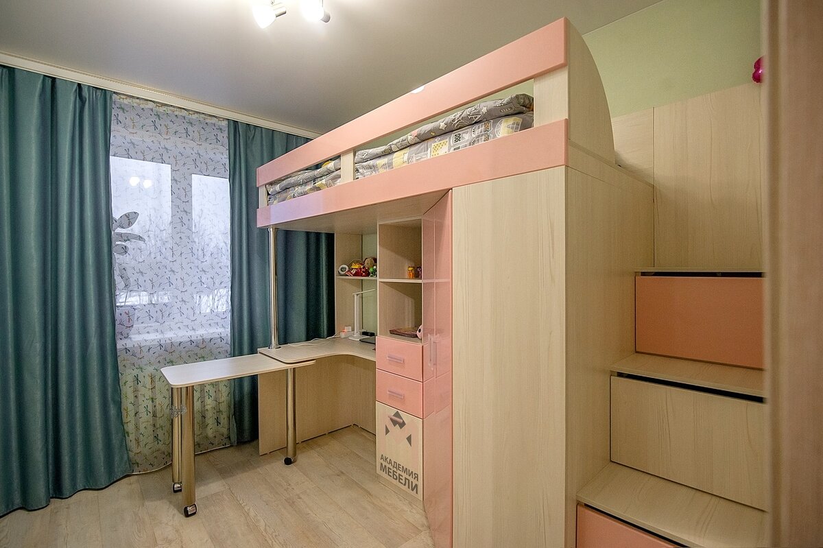 Установили мебель в детскую для девочки на Мещерского, 11. Мы все "родом из детства". И в отдалённых уголках памяти живут детские воспоминания или несбывшиеся мечты. Детская в пастельных тонах — красивая мечта или практичная реальность? Ответ решила дать команда "Академии Мебели". Дом – отражение нас самих. Наши эмоции – это наш главный ориентир. И так естественно окружить ребёнка красивыми вещами, прививая ему чувство прекрасного с детства. При создании проекта нашими дизайнерами было решено: во-первых, разделить детскую на несколько зон, чтобы у малышки было отдельное спальное место, игровое и, в идеале, ещё и учебное. Во-вторых, выбрать спокойные пастельные тона. Никакой тоски! Все-таки цвет влияет на эмоциональное состояние ребёнка. Детская в пастельных тонах — идеальное решение. В отделке детской очень важен свет, поэтому акцент у нас был сделан на светлые стены и пол. А в основу мебели для этой детской легли такие прекрасные материалы: корпус и фасады – ЛДСП Lamarty "Каньон Ледян