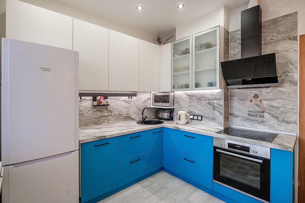 Установили кухню на Ленинградском, 360. Кухня – одно из самых любимых помещений в любом доме. На это не влияют её габариты. Это можно лишь усилить своими пристрастиями. И, если водная стихия поселяется в душе, то в дом "приходит" бирюзовая кухня. Она смотрится очень нежно и свежо, она напоминает цвет морской воды, наполняет энергией и хорошим настроением. К тому же, бирюза обладает уникальными свойствами, позволяющими придать пространству кухни особый колорит. Психологи утверждают, что бирюзовый цвет и его многочисленные оттенки помогают преодолеть усталость и нервозность, настроиться на философский лад, а также укрепить иммунную систему человека. Такой интерьер располагает к общению с друзьями и даже проведению чайной церемонии в кругу семьи. И в своей новой работе команда "Академии Мебели" с энтузиазмом взялась за разработку именно такого интерьера. Свежий и позитивный, не раздражающий излишней яркостью, успокаивающий и умиротворяющий оттенок прекрасной бирюзы стал главным акцентом э