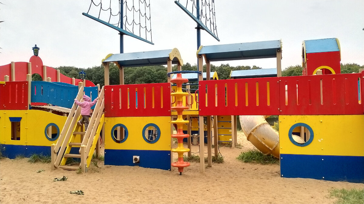 Для игры подойдёт любая площадка с домиками, городками, всевозможными лазалками, даже с простыми горками. Нам посчастливилось поиграть на корабле.