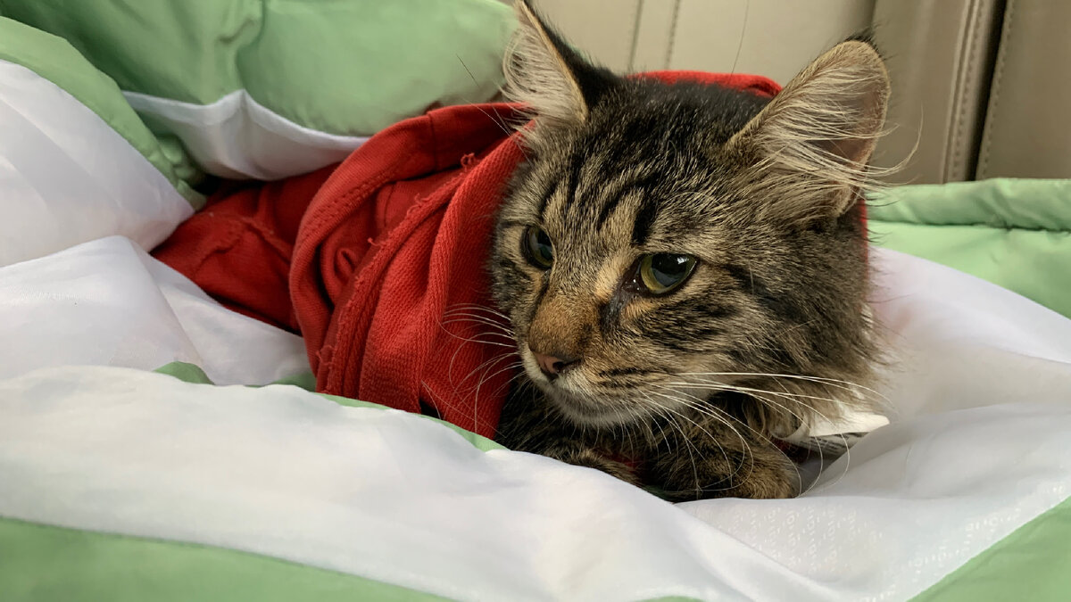 Сегодня поехали в магазин и пороге увидели тело лежачее посередине дороги. Вокруг поля и несколько СНТ. Подумали, что его кто-то сбил насмерть, но остановились проверить и вовремя! Он поднял голову! Мимо пролетали машины, которые даже скорость не снижали. Выйдя из машины увидели маленькое тело котика. Он не шевелился, только еле еле головой поворачивал. Супруга взяла его на руки, он был весь обмякший и вялый. Положили его на заднее сидение и в место магазина поехали в ближайшую ветеринарную клинику. Пока ехали кот уснул. По приезду к клинике достали его из машины, а он возьми и вырвался и бодро подняв хвост убежал. Мы попробовали его найти, но его след простыл. Видимо в машине пришел в себя и согрелся. Надеемся, что у него все будет хорошо!