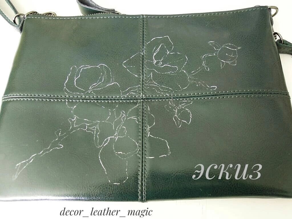 Очень мне эта работа понравилась,покажу и вам. Моя клиентка попросила расписать простую кожаную сумку,новую .Просила весеннюю веточку. А мне попалась на глаза ветка магнолии,я взяла её.В ней столько нежности, чем не весна. Перед работой обезжириваем поверхность,я использую спирт. делаем набросок. Потом закрашиваем все белой краской,это называется подмалёвок. И начинаем рисовать цветы. Не забываем про свет и тень. Намешиваем разные оттенки для проработки деталей цветка. Пока сохнут слои краски на цветках,начинаем подкрашивать веточку ,листики и бутоны. Добавляем обводку,прорабатываем тени. Рисуем серединку цветка. Набираем цвет на листьях ,бутонах. Ну,вот веточка наша расцвела! Теперь просушиваем окончательно. И покрываем лаком. Просушиваем лак и готово. Теперь такая сумочка одна единственная.Чем и ценна ручная работа,это всегда эксклюзив. Мне очень нравится эта работа! Клиентка ,вообще ,прыгала от восторга. Что скажете,вы,уважаемые читатели?