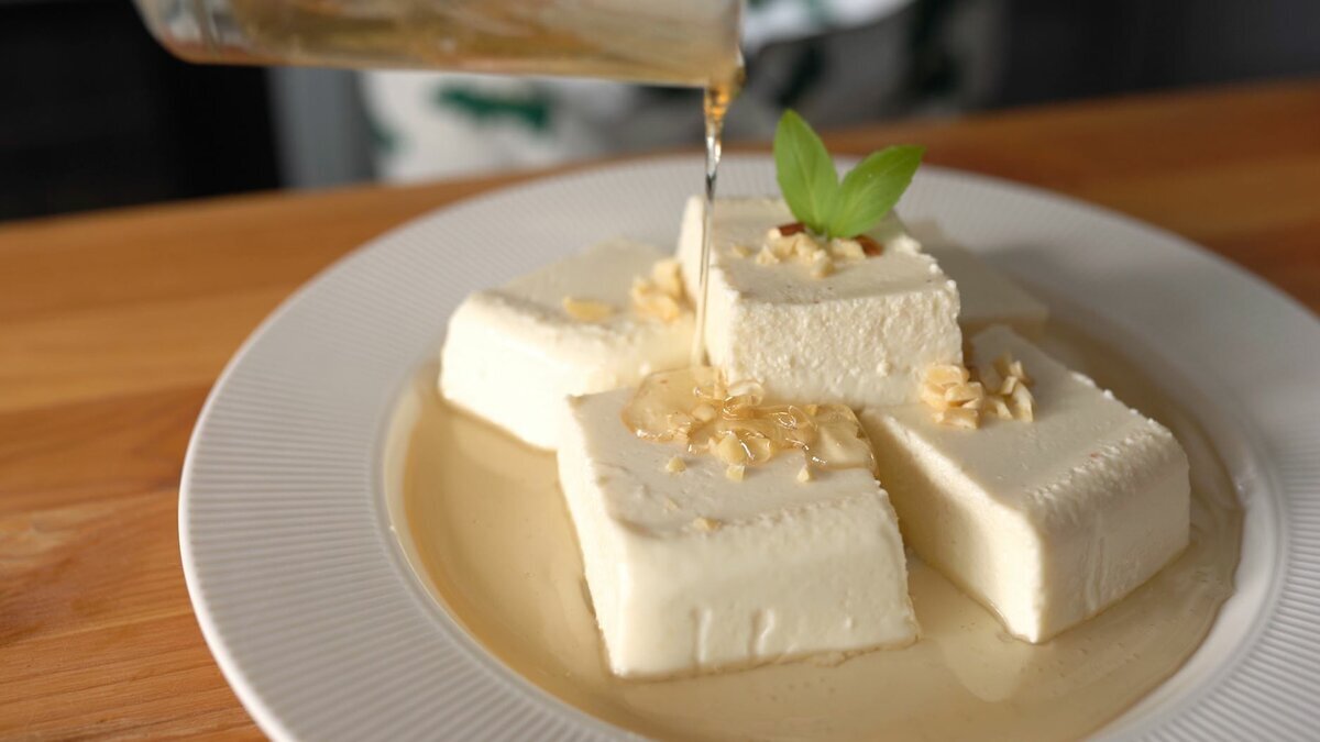 Сегодня готовим блюдо из игры Genshin Impact - Миндальный тофу. Блюдо не только красивое но и очень вкусное! Видео приготовления можно посмотреть -> ЗДЕСЬ Нужно: Для сиропа: Пошаговый рецепт: На ночь оставляем 100 г миндаля в воде. За ночь он разбухнет, поэтому снова нужно отмерить 100 г и очистить от шелухи. В кастрюльку заливаем молоко, высыпаем туда сахар и нагреваем. Нагреваем постоянно помешивая и до полного растворения сахара. Теперь закидываем всё это в блендер и перемалываем с молоком. Молоко добавляем понемногу, должна получиться равномерная консистенция. И тут можно пойти двумя путями: либо можно процедить получившуюся массу, отфильтровав всю мякоть и кусочки орехов, таким образом тофу получится идеально гладким. Либо ничего не фильтровать, и тогда мякоть придаст тофу некую особенность, так мы и сделаем. Теперь в кастрюльке смешиваем сливки и миндальную массу, и разогреваем до 60-70 градусов. Снимаем с плиты (ни в коем случае нельзя доводить до кипения), после этого выливаем