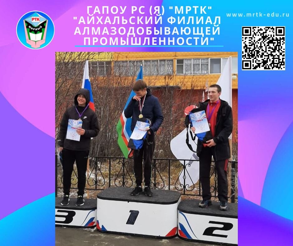 На «Кроссе нации-2022» студенты «Айхальского филиала алмазодобывающей промышленности» не оставили никому шансов на победу. 17 сентября 2022 г., в субботу студенты «Айхальского филиала алмазодобывающей промышленности» МРТК стали участниками марафона Всероссийского дня бега «Кросс нации-2022». Айхальских атлетов давно не смущает холодная погода - кросс отличная возможность показать свою выносливость. Несмотря на небольшую протяжённость маршрута, это всего один километр, усилий молодым людям пришлось приложить немало, особенно трудно было на отрезках «в горку». Яркие финиши сопровождались поддержкой многочисленных болельщиков из числа родителей, педагогов, друзей. Студенты МРТК очень отличились в этих соревнованиях, заняли все призовые места, не оставив шансов школам. В возрастной категории 16-18 лет 1-е место занял студент 1 курса Гришин Евгений, 2-е место – студент 2 курса Динисенко Виктор и 3-е место занял студент 2 курса Хоботнев Николай. А студент 3 курса Уматкулов Баходур взял 3-е