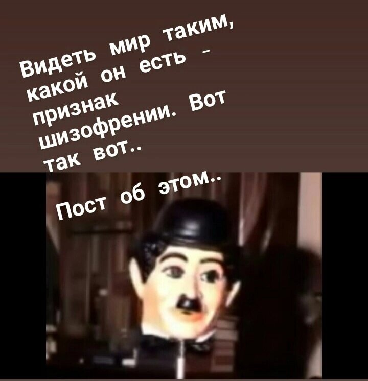 Намастэ всем 🙏 Несколько лет назад узнала про такой вот тест . Называется "Маска Чаплина". Это гифка. Найдите ее и посмотрите.. Если ваш мозг додумывает и дорисовывает/допридумывает, то вы нормальный. А если он видит ее такой, какая она есть - то типа лечиться надо 😂😂. Может, с нашей жизнью так же? Вот это и порождает у меня вопрос - может странные люди, которые попадаются мне иногда и говорят странные вещи, может они просто видят все как есть, а мы тут напридумываем, сажаем в больницы с ярлыками просто потому, что их мало? Омрачилась я тогда надолго от этого открытия. 💚💚💚