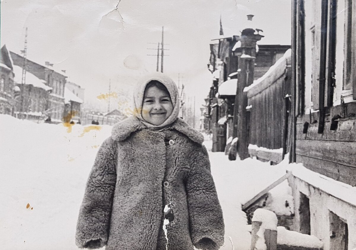 На этом снимке маме лет десять. Она стоит рядом с домом нашего детства.