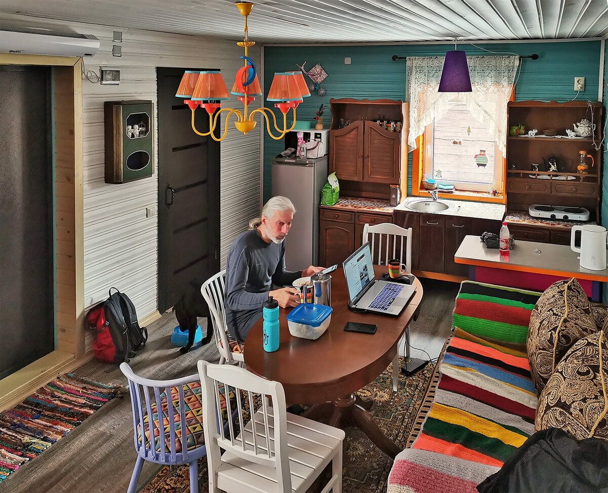 По традиции рассказываем, как мы с собаками живем в путешествиях. Двухэтажный гостевой дом, оформленный в стиле шебби-шик, на Байкале, в Иркутской области (поселок Утулик). Наверное, надо сразу оговориться, что жилье на Байкале дорогое, а цены искусственно завышены. И на бурятской, и на иркутской части побережья. К этому нужно быть готовыми, отправляясь любоваться на самое большое озеро планеты. За ночь в чудном домике в Утулике в марте 2022 года мы заплатили 6 000 рублей (цена за сутки). И сочли выгодным предложением. Для сравнения: крошечный номер с удобствами без интернета и телефонной связи в селе Максимиха нам обходился по 7 400 в сутки (Гостевой дом «Матрешка». Пришлось и на него согласиться. Выбора не было, приехали на соревнования «Байкальская миля 2022», приличное жилье с протянутым оптоволокном и хорошим сигналом для любой связи с миром вокруг уже было занято). В «Матрешке» в отличии от «БайкКалины» за каждые сутки с нас брали доплату за собак (хозяйка «БайкКалины» Екатерина
