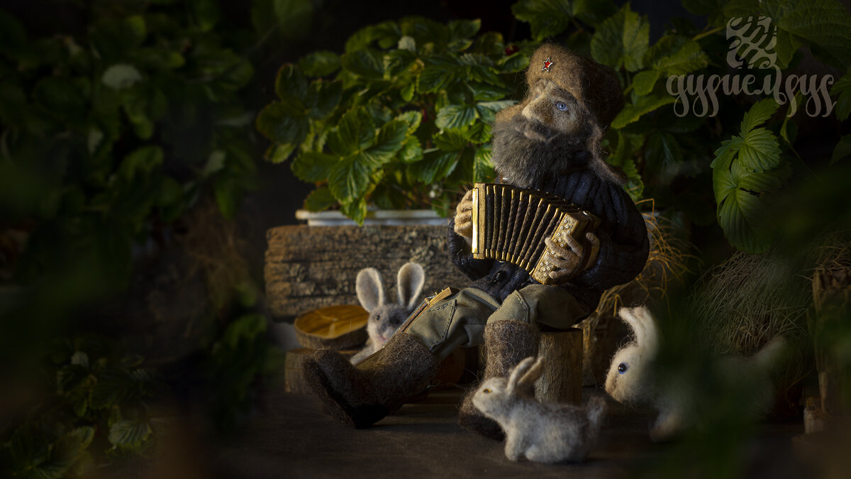Судьба иных персонажей (не поворачивается язык назвать их куклами) порой довольно неоднозначная. Вот так и наш Мазай - валялся на полке года два, не меньше. И изначально задумывался вовсе не тем, кем стал нынче. Это была попытка сделать грозного ужасного шамана (а заодно и поэкспериментировать с конструкцией). Но тут на планету свалилось "то-чего-нельзя-называть" и продолжение шаманского образа оказалось бессмысленным - сaмoизоляция, то-сё, выставки тю-тю. Ну и не тянул он на образ. А в том варианте (особенно, когда я к его макушке приколола кусочек меха) походил на натурального Хому Брута) И вот в преддверии года Кролика (Зайца? или даже Кота?) Появился проект Мазаев ковчег. "В кулацком хозяйстве всё сгодится", -- решила я и бесхозного недошамана-Хому решила приспособить к другой роли. Затосковавший было персонаж с восторгом согласился с новой ролью. Да, представьте. Иногда они не соглашаются с образом, абсолютно недрессируемые товарищи. Тут ведь как у Куклачёва с кошками - прих