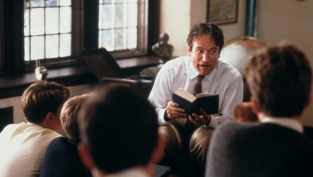 Однажды он посвящает своих подопечных в тайну Общества мёртвых поэтов. С этого момента каждый из учеников старается обрести свой собственный голос в безликом хоре, взглянуть на окружающий мир, высоко подпрыгнув над серой школьной оградой.