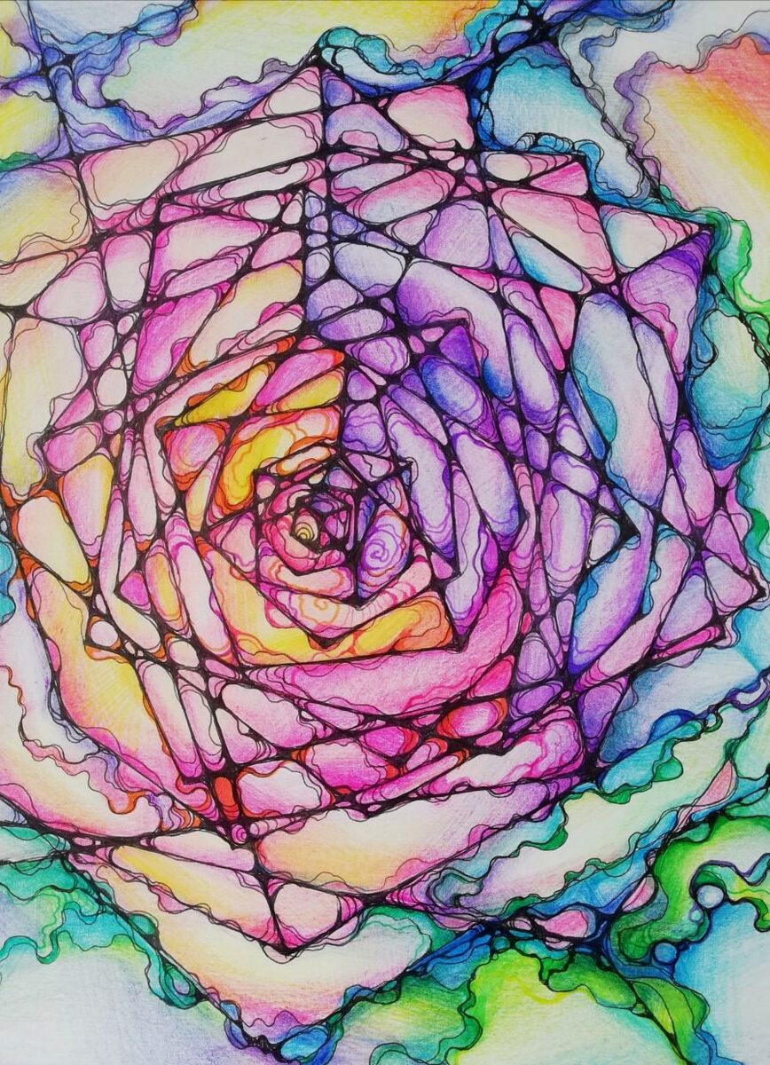 Иллюстрация к тексту: Пронзенный безумием куб обрастает розой "Мой куб мечется в пространстве, в поиске Истины, познавая, расширяется и превращается в розу". #конкурснейродевять