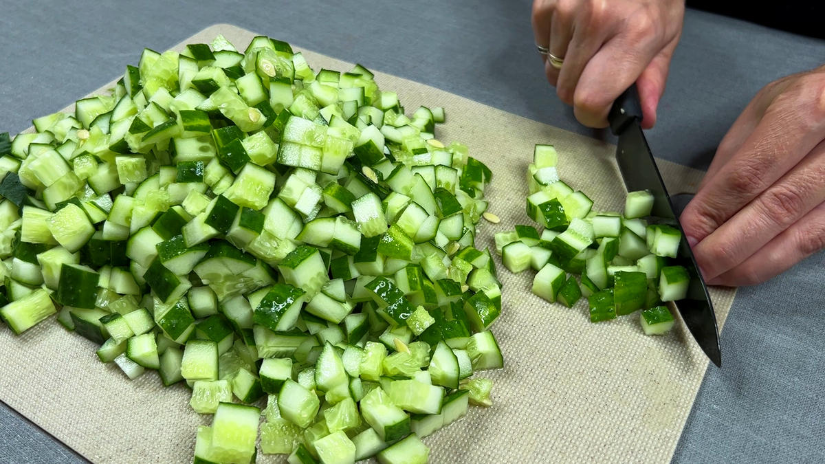 Теперь, любимые рецепты салатов, таких как оливье, винегреты и другие, готовить проще простого, а самое главное со своими домашними, вкусными огурчиками! Использовать очень удобно: сливаем маринад откинув на дуршлаг, и добавляем в блюдо. ✅ Способ приготовления. 1. Нарезаем огурцы небольшими кубиками 2. Добавляем соль, сахар и перемешиваем огурцы. Затем добавляем уксус, ещё раз перемешиваем и оставляем на 4 часа. Пока настаивается перемешиваем каждый час. 3. В каждую баночку кладём перец горошком и лавровый лист, затем плотно раскладываем огурчики по стерилизованным баночкам и добавляем сок. 4. Накрываем банки крышками, на дно кастрюли стелим полотенце и сверху ставим баночки. Наливаем тёплую воду по плечики банок и стерилизуем 20 минут с момента закипания.