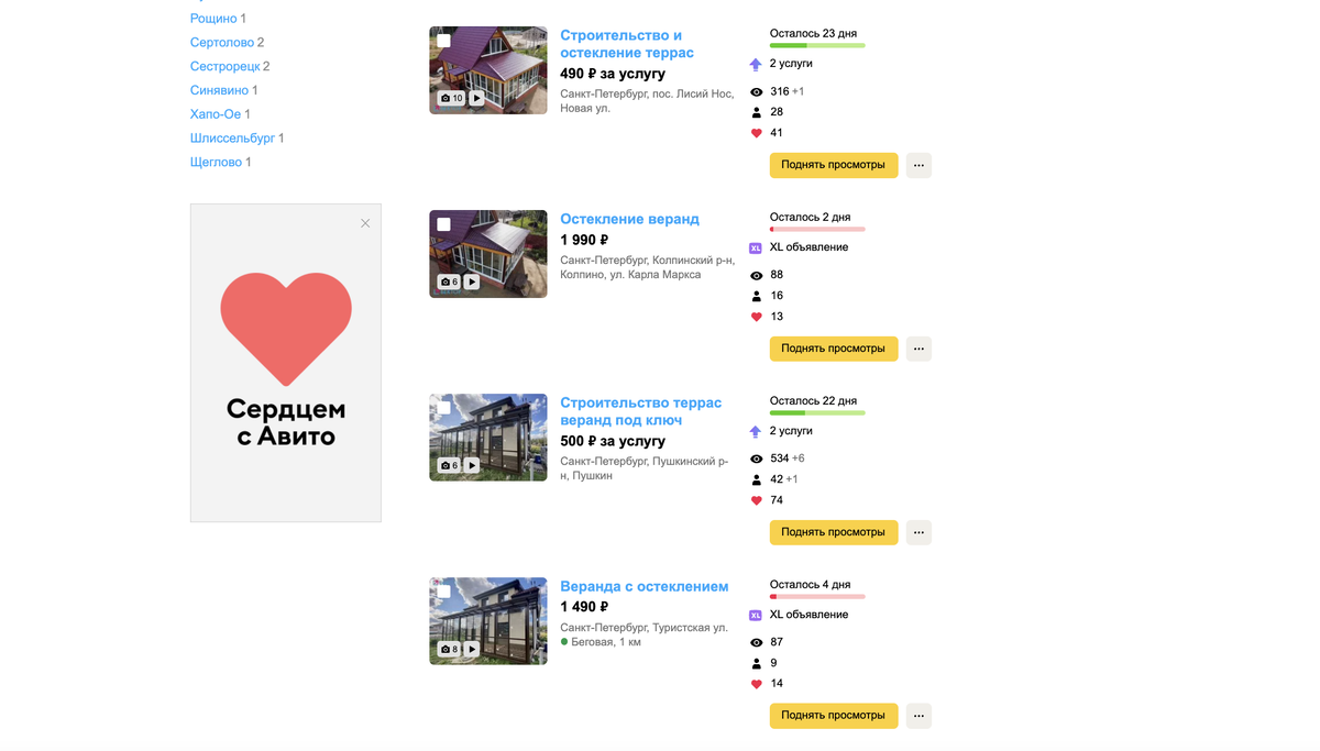 Кейс: продвижение на Авито, ниша - строительство и остекление беседок/террас/летних садов