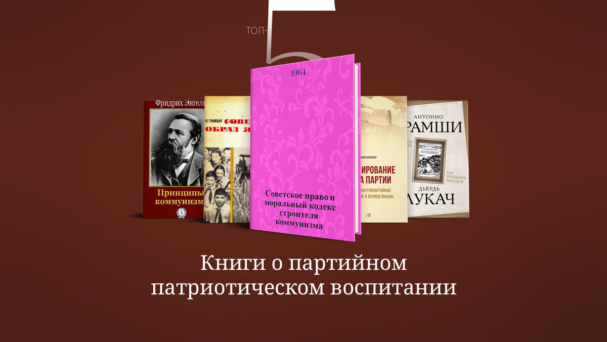 «Советское право и моральный кодекс строителя коммунизма» Иосиф Дрейслер Пропаганда в СССР провозглашала, что в моральном кодексе, сформулированном в Программе КПСС, впервые нравственные принципы приведены в строго научную систему, впервые дана чёткая научная дифференциация самостоятельных моральных принципов[6]. Важнейшие нравственные принципы, сформулированные в моральном кодексе строителя коммунизма, не выдуманы или декретированы сверху, а отражают реальные отношения, складывающиеся в советском обществе, и служат основой поведения и деятельности советских людей. «Формирование духа партии. Строгое внутрипартийное управление в период Яньань» Чжан Цзяньжу В книге всесторонне и системно описана теория и практика применения метода строгого управления Коммунистической партией Китая в период Яньань. Период Яньань — это один из самых важных этапов в истории Коммунистической партии Китая. В труде Цзяньжу даны ответы на ряд основных вопросов о целях, приоритетах и подходах партийного строител
