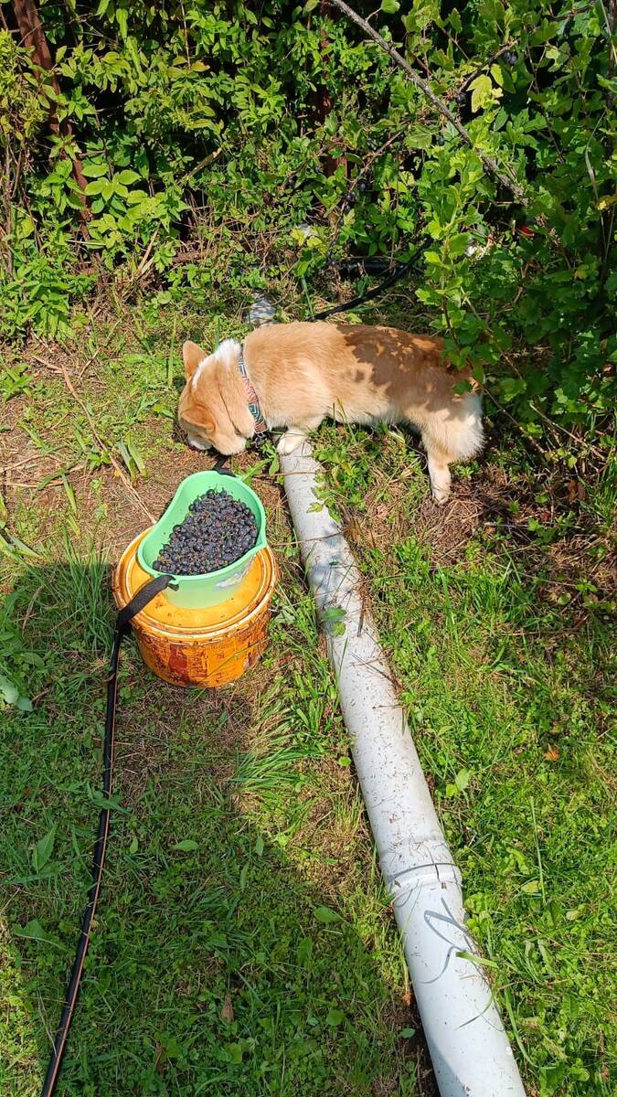 Для наших четвероногих членов семьи вылазка на дачу это огромное счастье. Ведь загородный участок это клондайк разных вкусностей. И яблочки, и земляника, и ежевичка! Свежий воздух и 20 соток просторов, гуляй не хочу. Когда наскучит нежиться на солнышке и собирать урожай самим, то можно походить за человеком. Вдруг угостят чем-то недоступным, высокорастущим. Вот, например, кабачок-переросток. Я добавляю его в миску с мясом собакам, едят с удовольствием. Сами на такого гиганта они не посягают. Наверно не знают, что маленькие кубики сочного растения в миске и этот крепыш это одно и тоже. Далее можно заглянуть в теплицу. Сладкие помидоры "черри" на один зубок и гиганты "бычье сердце" под 500 гр. Очень заманчивые овощи, но надо дождаться официального угощения! Дело это не быстрое, можно и прикорнуть. Но награда того стоит. Собранный урожай надо тщательно охранять, а то вдруг кошки! Которых тут, кстати, немало. Своих хватает, так и соседские ещё норовят прошмыгнуть! Глаз, да глаз! Но вы п