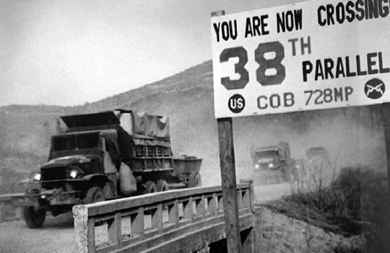 Американская военная техника пересекает 38-ю параллель. (Wikimedia Commons)