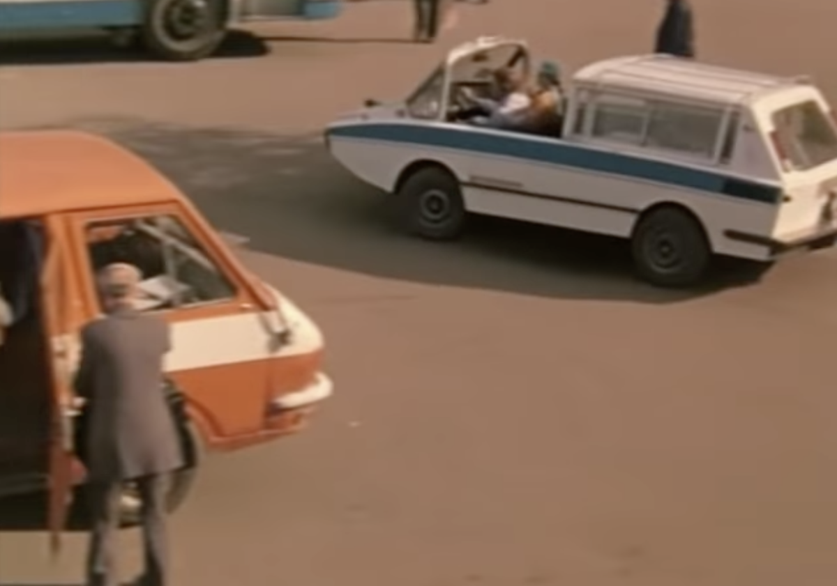 Но для начала собственно про #Ихтиандр . По сценарию его создал Гена. Однако в действительности его сконструировал и собрал инженер Игорь Рикман. Будучи заядлым рыболовам он решил сделать некое универсальное средство передвижения. Поэтому обводами кузова машина оказалась похожа на минивэн и лодку одновременно. Вот только для улучшения плавучести у автомобиля не было дверей. На боковинах хорошо видны подножки при помощи которых можно было попасть в салон. Передняя секция была сдвижная, на фотографии это хорошо видно. Сам кузов был разделен на три герметичных отсека.