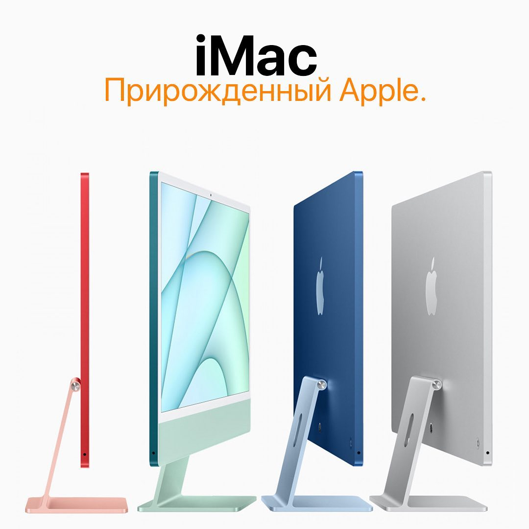 📦Знакомьтесь: новый iMac 🖥 Такой невероятно тонкий дизайн, всего 11.5 мм, стал возможным благодаря чипу M1 — первой системе на чипе, созданной для Mac. 🔸Семь ярких цветов, абсолютно на любой вкус. 🔸На превосходном дисплее Retina 24 дюйма с разрешением 4,5K всё видно чётко, и вы сможете рассмотреть каждую деталь. Широкий цветовой охват P3 обеспечивает реалистичную передачу изображения с помощью более миллиарда цветов. 🔸Акустическая система iMac создаёт невероятный звук, заполняющий собой всё пространство. Две пары низкочастотных динамиков с подавлением резонанса добавляют глубокие, насыщенные басы. 🔸Клавиатура, мышь и трекпад представлены в тех же цветах, что и новый iMac. У Magic Keyboard теперь есть отдельные клавиши для Spotlight, Диктовки, эмодзи и функции «Не беспокоить».