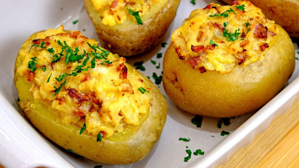 Рецепт для экономных: если у вас дома только картошка, а кушать хочется, то запеките картофель в духовке с сыром. Рецепт очень простой, вам не понадобится много ингредиентов. Такую картошечку я готовлю часто. У нас все ее любят, подаю в качестве горячего, никто еще не отказывался. Говорят очень вкусно! Как приготовить запеченный картофель с сыром в духовке: Сначала подготовим картофель: хорошо моем, чтобы кожура была чистая. Очищать картофель не нужно. Вытираем бумажными полотенцами, заворачиваем в фольгу и запекаем до готовности в духовке. Картофель немного остужаем, затем разрезаем пополам и ложкой убираем сердцевину. Оставляем примерно 1 см от кожуры. е Картофель, который убрали ложкой, разминаем вилкой, добавляем сливочное масло, тертый сыр, соль и перемешиваем. Можно еще добавить зелень. Получившейся смесью фаршируем картофель, сверху можно посыпать дополнительно сыром, но можно и не посыпать. Запекаем в духовке еще минут 7-10, чтобы сыр расплавился. Поверьте, это очень вкусно! Т