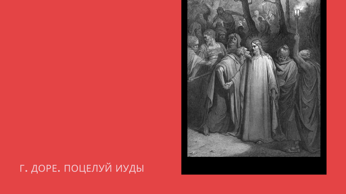 Он предал Учителя целованием. Один из стоящих рядом с Иисусом, выхватил меч и отсек ухо рабу. Спаситель укорил, что берут его как разбойника, а после слов