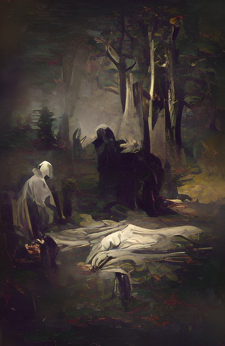 Уйдя с головой в рисование, Николай напевал все громче и громче, повторяя молитву-призыв, с которой некогда обращался к духам леса его дед. Сам Николай не мог помнить обряда, не слышал сокровенной песни старика. К моменту начала обряда, того, двадцатилетней давности, он был уже мертв несколько часов.