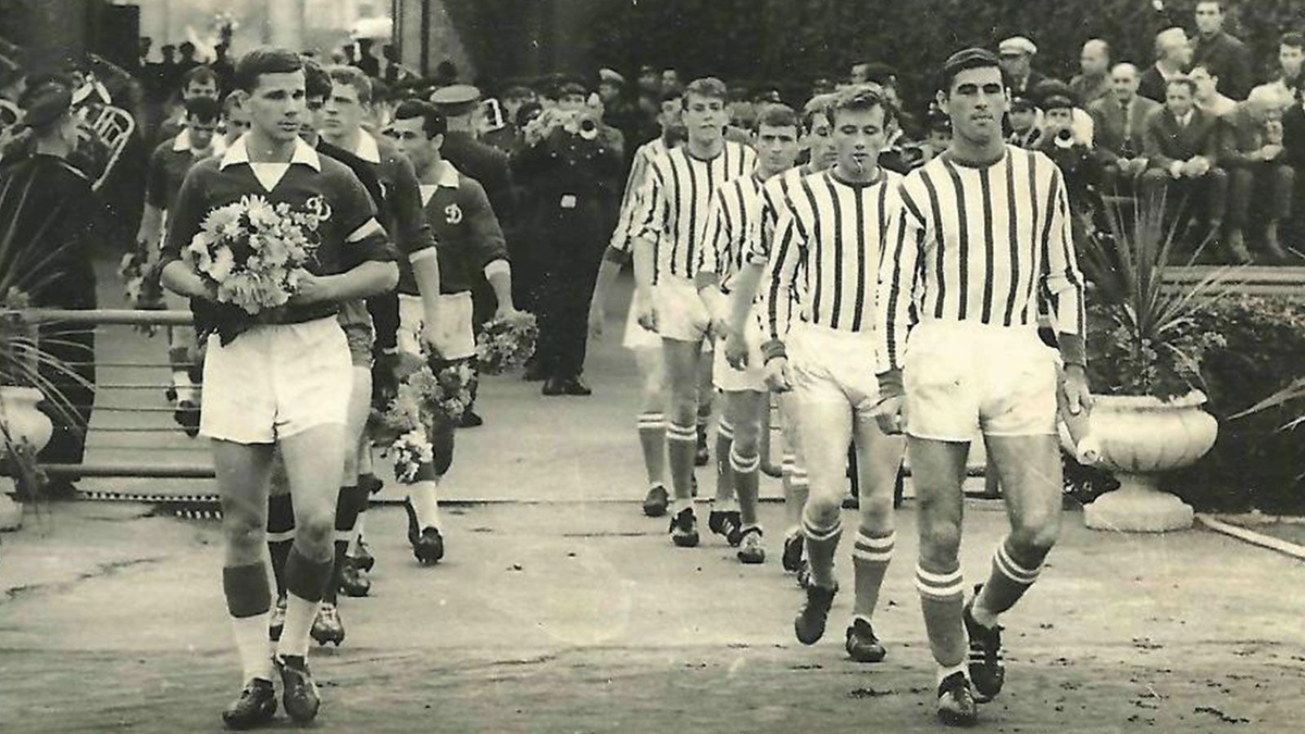 История киевского «Динамо». Несмотря на то, что Советский союз вступил в ФИФА всего через год после окончания Второй мировой, главная команда страны начала участвовать в международных соревнованиях лишь в 1952-м. С еврокубками все складывалось еще сложнее — более позднее вступление в УЕФА (1954) позволило начать клубам из СССР играть в Европе лишь в середине 60-х. Такие паузы между вступлениями в организации и фактическими стартами выступлений обычно связывают с желанием советских властей как следует подготовить сначала сборную, а потом и клубы к старту на официальных турнирах. По этой версии, в СССР боялись болезненных поражений в матчах против западных команд. Якобы именно по этой причине руководство СССР не позволило чемпиону СССР тбилисскому «Динамо» принять участие в Кубке европейских чемпионов в сезоне 1964/1965. Вместо команды из Тбилиси прорубать окно в Европу пришлось другому «Динамо» — из Киева. Обладатель Кубка СССР 1964 года стал первым клубом из СССР, сыгравшим в Европе —