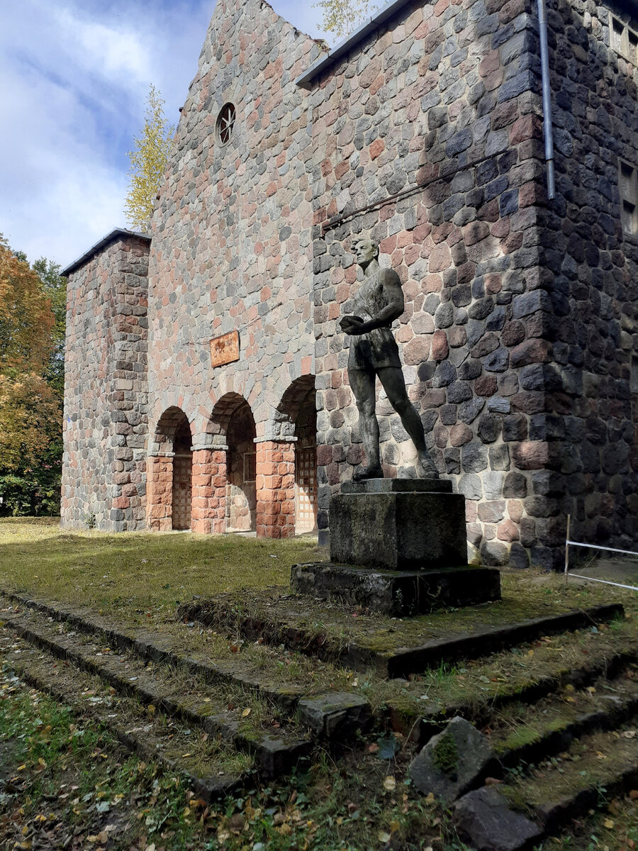 с целью впечатлиться руинами тевтонского замка 15 века, но и обязательно обойти вокруг этого брутального здания с торчащими из крыши флагштоками и одноруким спортсменом (волейболистом или метателем ядра?) на постаменте справа от входа.