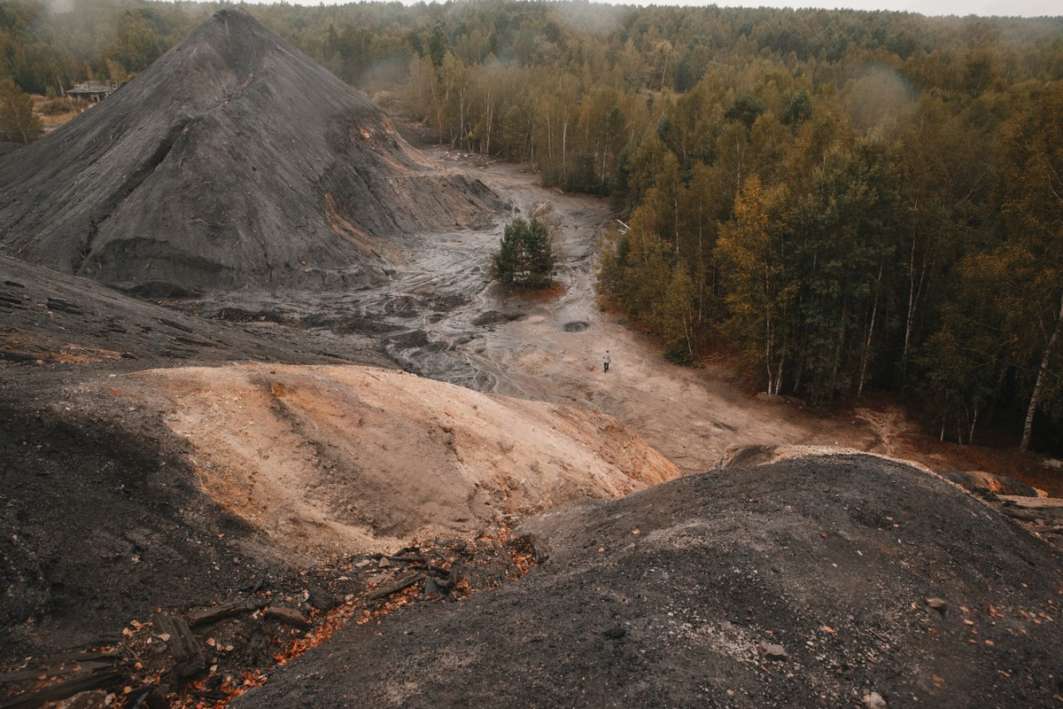 Готовимся подняться на чёрную гору, основание которой со временем уже поросло молодыми деревьями. «Стойте! – кричит дядя Саша. – Посмотрите, что у вас под ногами – это же красный гранит. А кусок жёлтого цвета – глина. Порода эта хорошо шла в производство кирпича. А это – известняк, пемза вперемешку с железом, глауконит с угольным вмешательством. Так что тут был широкий профиль разработки. Посмотрите, какая богатая коллекция образцов получилась!»
