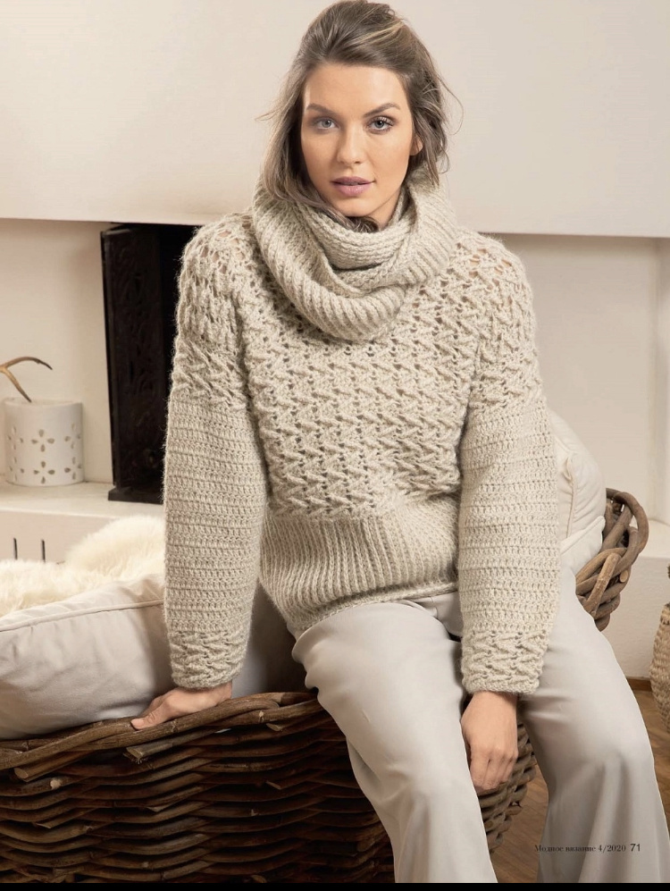 Тёплый, стильный пуловер и снуд. Подробное описание. Вязание крючком.