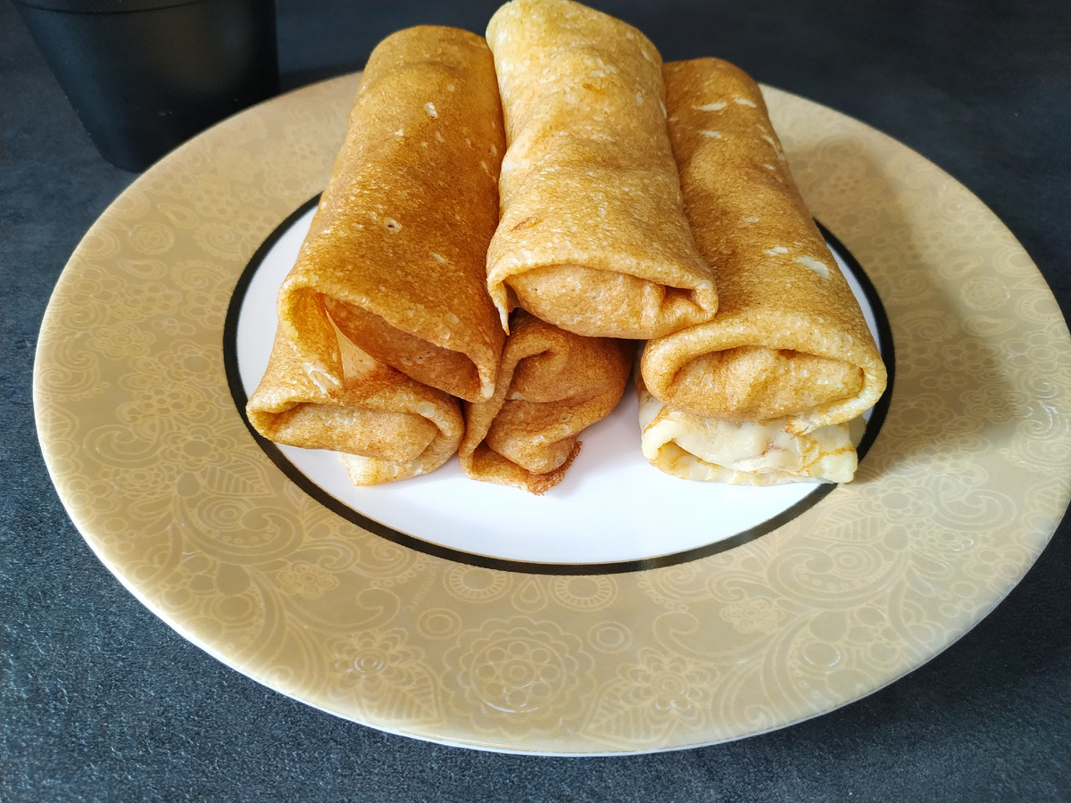 - Выкладываем начинку на блины сворачиваем и обжариваем на сливочном масле.