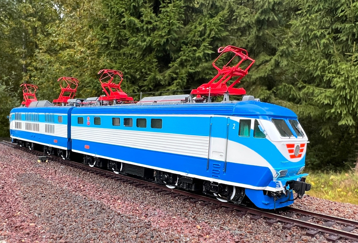 Электровоз ЧС200 (ЧехоСловацкого производства, максимальная скорость 200 км/ч) представляет собой скоростной пассажирский двухсекционный восьмиосный электровоз постоянного тока, выпущенный в Чехословакии заводом Škoda в г. Пльзень в 1974 году, и с 1979 по 1980 год, для эксплуатации в СССР на скоростных участках линии Ленинград - Москва, с максимальной скоростью 200 км/ч и конструкционной скоростью 220 км/ч. Всего заводом было выпущено 12 электровозов этой серии. Модель электровоза ЧС200-004 изготовлена моделистом Владимиром Поповым, уже известным постоянным читателям нашего канала. Модель выполнена в типоразмере Н0 (масштаб 1:87). Собран миниатюрный электровоз из кита производства И. Гусева (Модель-Экспресс). Модель стендовая, детали изготовленные путем фототравления от мастерской ARtModel, пантографы от фирмы СвеТТофор. Исходный набор для самостоятельной сборки предназначен для сборки модели электровоза ЧС6, поэтому для изготовления ЧС200 пришлось переделывать ряд деталей. Колеса ис