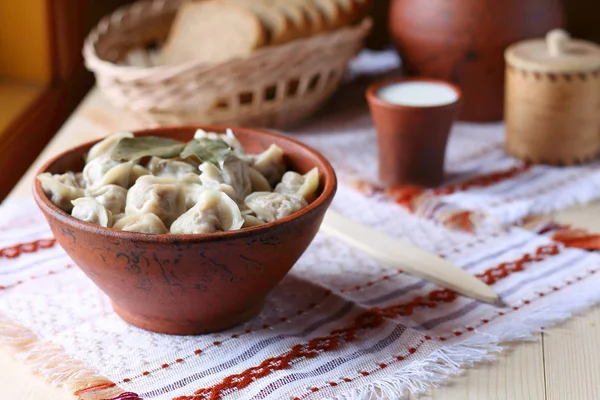 Пельмени – традиционное блюдо русской кухни, представляющее собой маленькие варёные пирожки из пресного теста, чаще всего с начинкой из рубленого мяса, но могут быть также с рыбой, грибами или овощами.